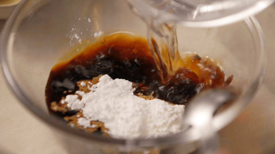 最重要的是调灵魂酱汁,生抽、陈醋、老抽、番茄酱、白糖、盐、淀粉,最后倒入少许清水调匀。这个糖醋酱汁做什么都绝,好吃到舔盘。