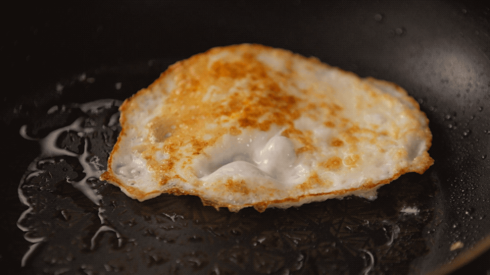 先教大家做一个高阶版的煎鸡蛋——漫画蛋。第一步过滤鸡蛋,过滤掉流动性大的液体,保证煎蛋时鸡蛋的完整性(做漫画蛋最好用无菌蛋哦~)。拿出平底锅,火要开到最小,刷上少量底油,小心翼翼地倒入鸡蛋。以防它溜走,用勺子调整好蛋黄的位置,再在锅中空白的位置加一勺水,盖上锅盖利用水蒸气焖1分钟。