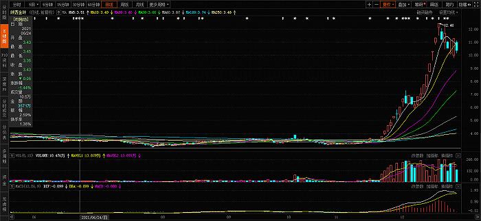 2021年11月23日至12月20日,陕西金叶“妖性”十足,在连续20个交易日内实现14次涨停,股价由3.8元/股直线拉升至12.46元/股,阶段性涨幅228%。此前近两年时间内,陕西金叶股价一直在3元左右徘徊。