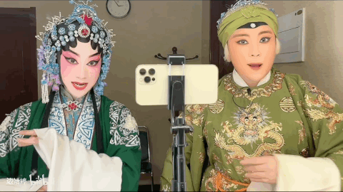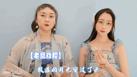 也会和杨淅一起合唱《海底》。为了能够让粉丝分清楚各种唱腔,也会在视频上标注出,比如老旦戏腔,青衣戏腔(杨淅唱工程派青衣)。