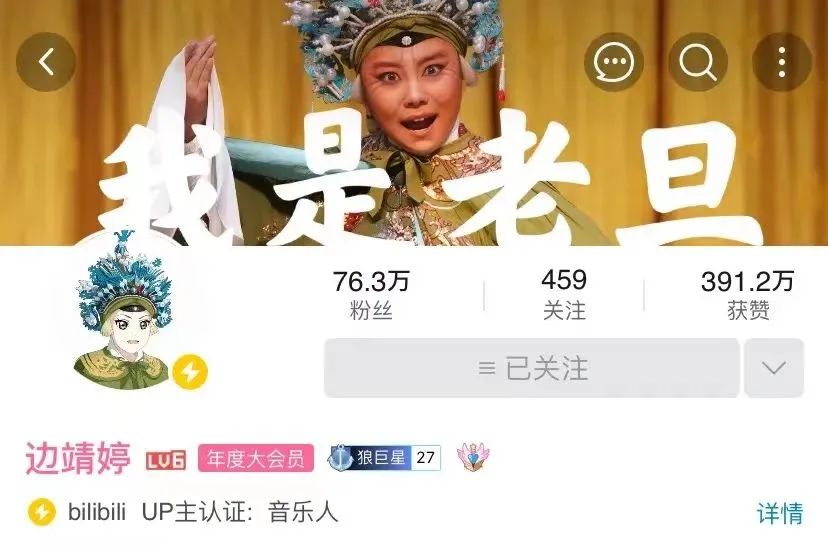 小姐姐在b站上的介绍也是非常坦荡:我是老旦!