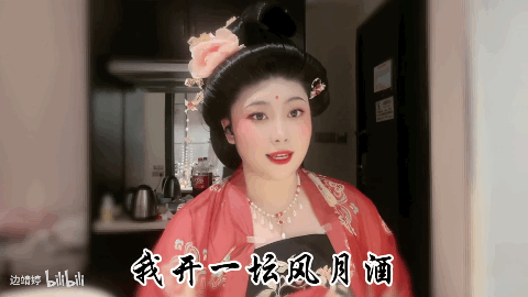 除了翻唱,边靖婷也会原创戏腔歌曲。边靖婷的原创个人单曲《满酒》,穿着唐时贵妇华服,唱着如梦初醒般的贵妃愁绪。