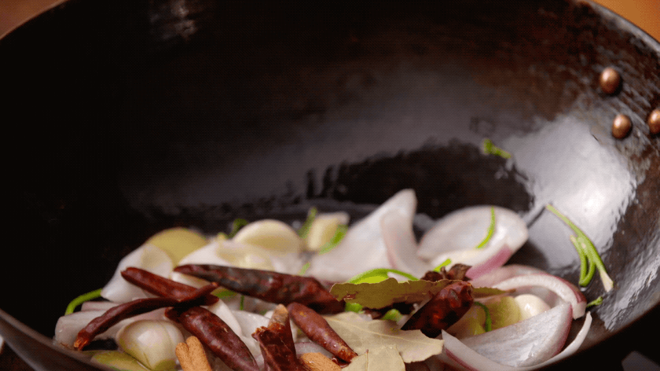 接着起油锅,把香料煸香,加入豆瓣酱、羊蝎子,翻炒上色,再加适量的水,盐、冰糖、生抽、老抽调味。这就是红烧羊蝎子好吃汤底的秘诀。