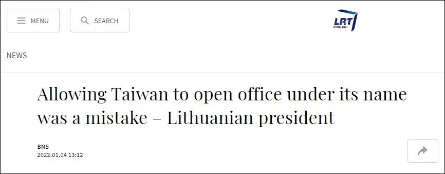 据观察者网此前报道,立陶宛总统瑙塞达(Gitanas Nausėda)4日接受当地电台(Žinių Radijas)采访时表示:“立陶宛犯了一个错误,允许台当局以‘台湾’之名在首都维尔纽斯开设代表处,从而引发了中方的强烈反应。”