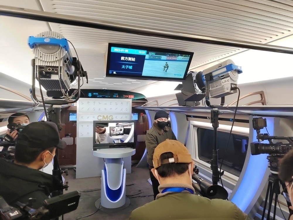 8号车厢内设奥运直播演播室