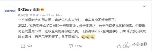 2022,我确实开始了自己的一些新事业,关于潮流IP、关于内容多元化的探索。但是爱奇艺的重点节目,还以监制的身份在负责。《新说唱2022全明星季》,我叫了那么多大咖来竞技,自己甩手不管了,是不可能的。