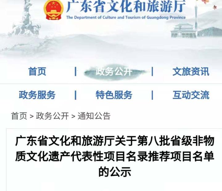 2021年,广东省文化和旅游厅启动开展了第八批省级非物质文化遗产代表性项目推荐申报工作。经各地各单位推荐、省非物质文化遗产保护工作专家委员会专家评审组评审、专家委员会主任委员会议审议、厅党组会研究,提出第八批省级非物质文化遗产代表性项目名录推荐项目115项,其中新入选项目42项,扩展项目73项。