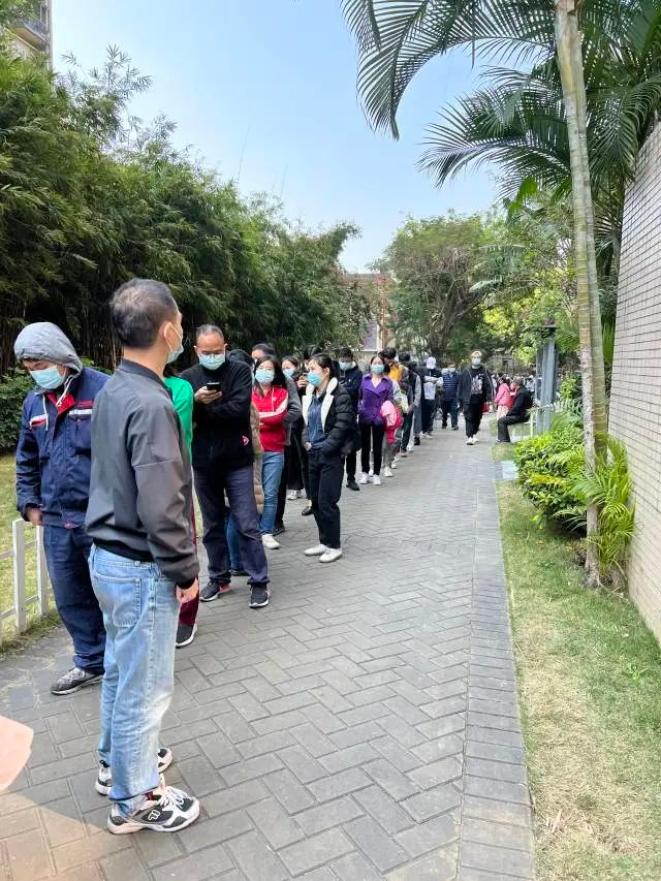 目前,深圳多个小区、街道检测点已开始排队进行核酸检测。
