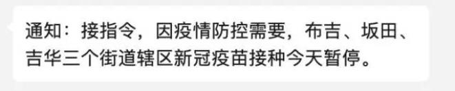 此外,龙岗区布吉、坂田、吉华三个街道辖区新冠疫苗接种今天暂停。