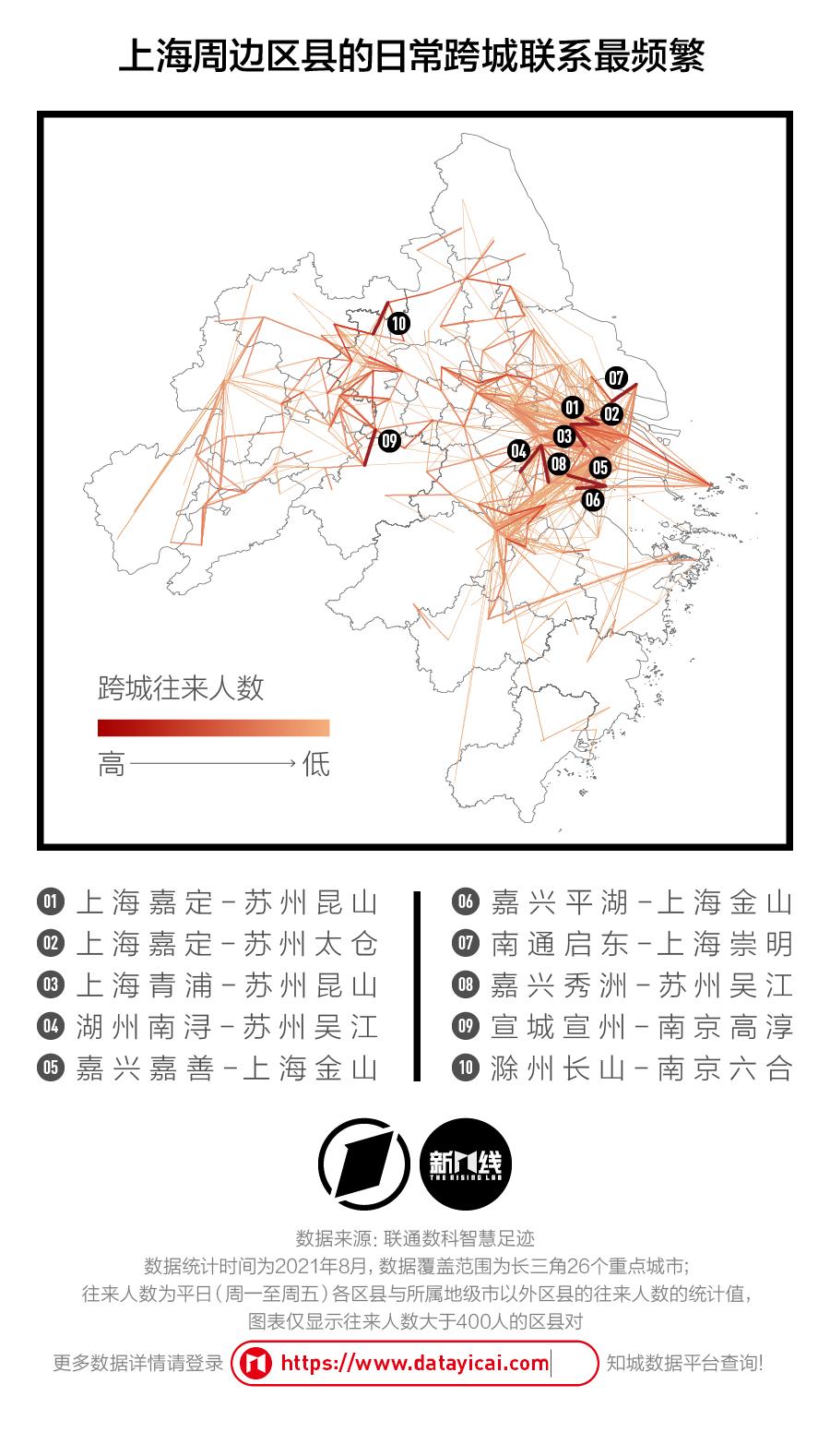 在经济发达、人口稠密的长三角地区,城市与城市之间的联系一直都十分紧密。最典型的,上海与相邻的苏州、嘉兴之间有大量的产业协作,马鞍山、滁州等城市也与南京保持着频繁的人员往来。