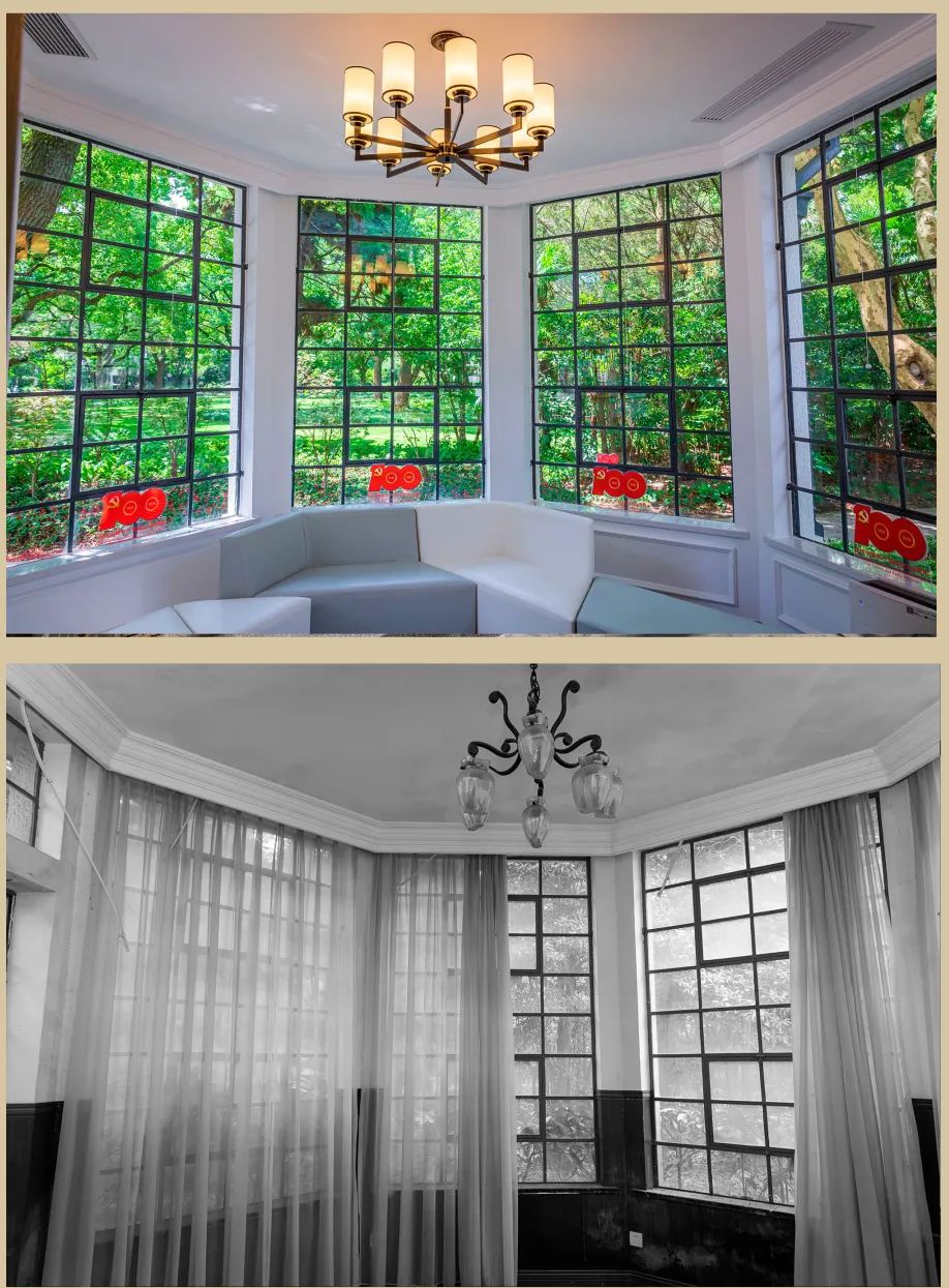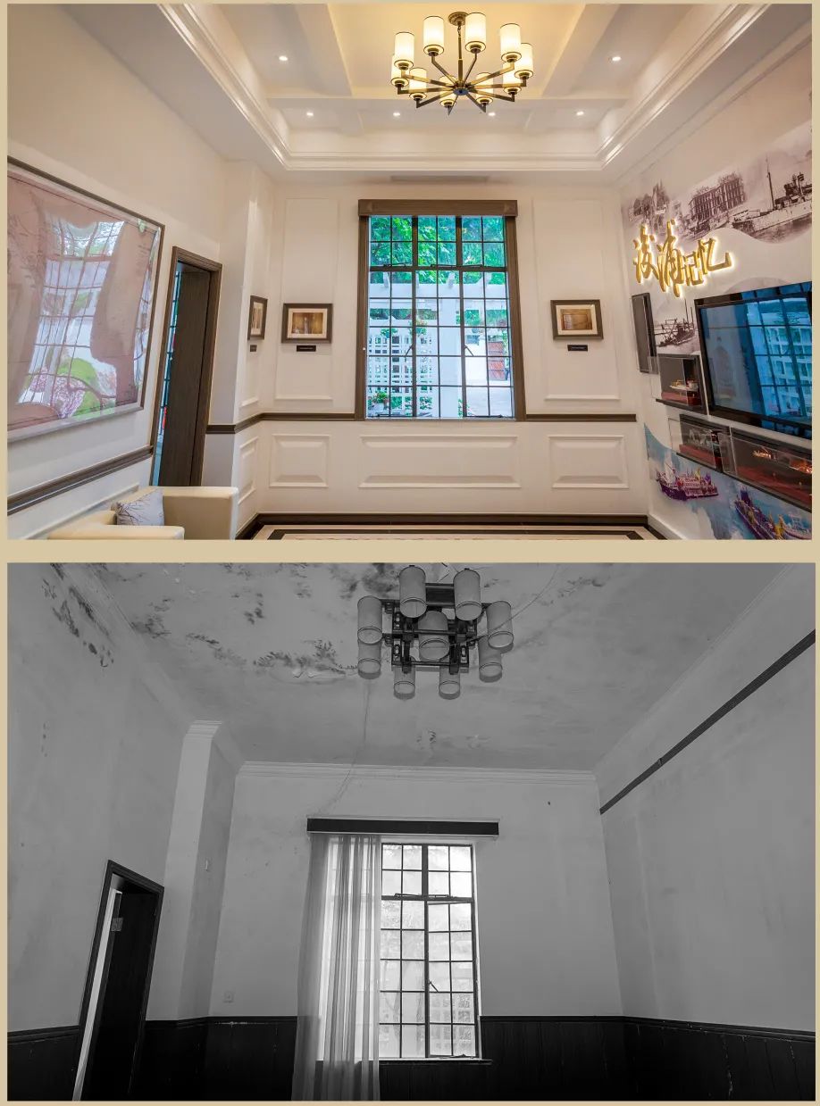 白庐修缮遵循“修旧如旧”的基本原则,建筑立面风格维持现状不变,结构形式保持原有不变。此次改造,对房屋内部结构进行检修加固,通过翻修屋面瓦,拆换檐沟,增补屋面防水等解决房屋残损,屋面漏水等问题,改善了建筑的使用功能,提高了建筑安全性能。建筑外立面方面,对外墙涂料原色拉毛修复,原有钢制门窗,同色出新,对破损较严重的八角亭屋顶采用原形式屋面瓦翻新,并予以做旧处理,使外立面形象更为协调统一。