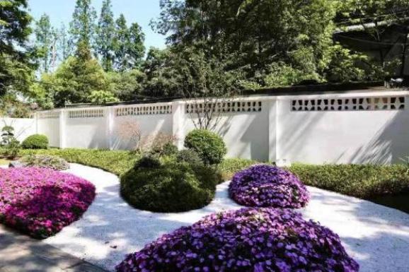 室外环境坚持绿色、开放、共享的设计理念,采用现代简洁的设计手法,有效组织园林设计各要素,形成东西两处花园空间。东花园保留木香老藤及原有大树,一高一低,俯仰相合;新植枫树、杜鹃等植物,设置组合花境,使花园四季有花。西花园总体营造现代东方景观韵味,采用透空围墙,借景公园景色,花园布置上,采用现代手法,贴合传统东方园林意境,在有限的空间内让人感受到自由远阔的山水精神,与“公园城市”理念党群服务站形成有效呼应。
