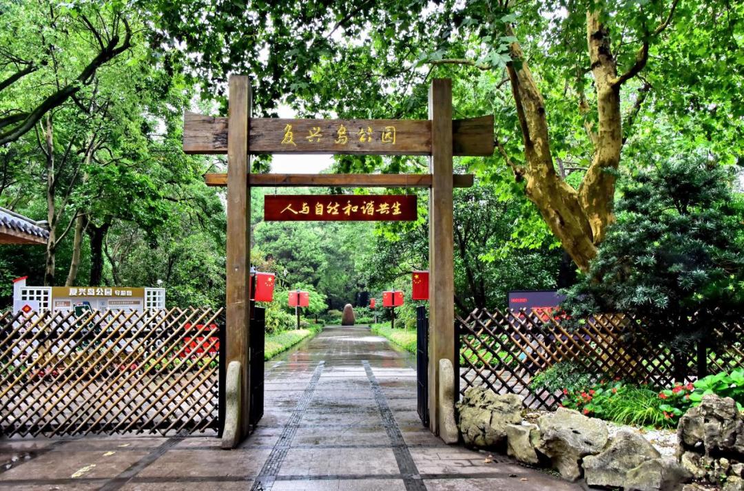 为庆祝抗日战争胜利,民族复兴,公园内建立复兴岛收回纪念碑。其后因纪念碑损毁,在重新垒石后命名为复兴石。到今天,这里已成为爱国主义教育打卡基地。
