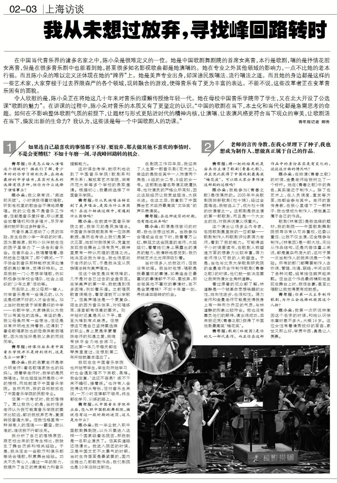青年报:你从民族唱法转变到了美声唱法,是因为什么原因呢?在这个转换过程中,有遇到什么困难吗?