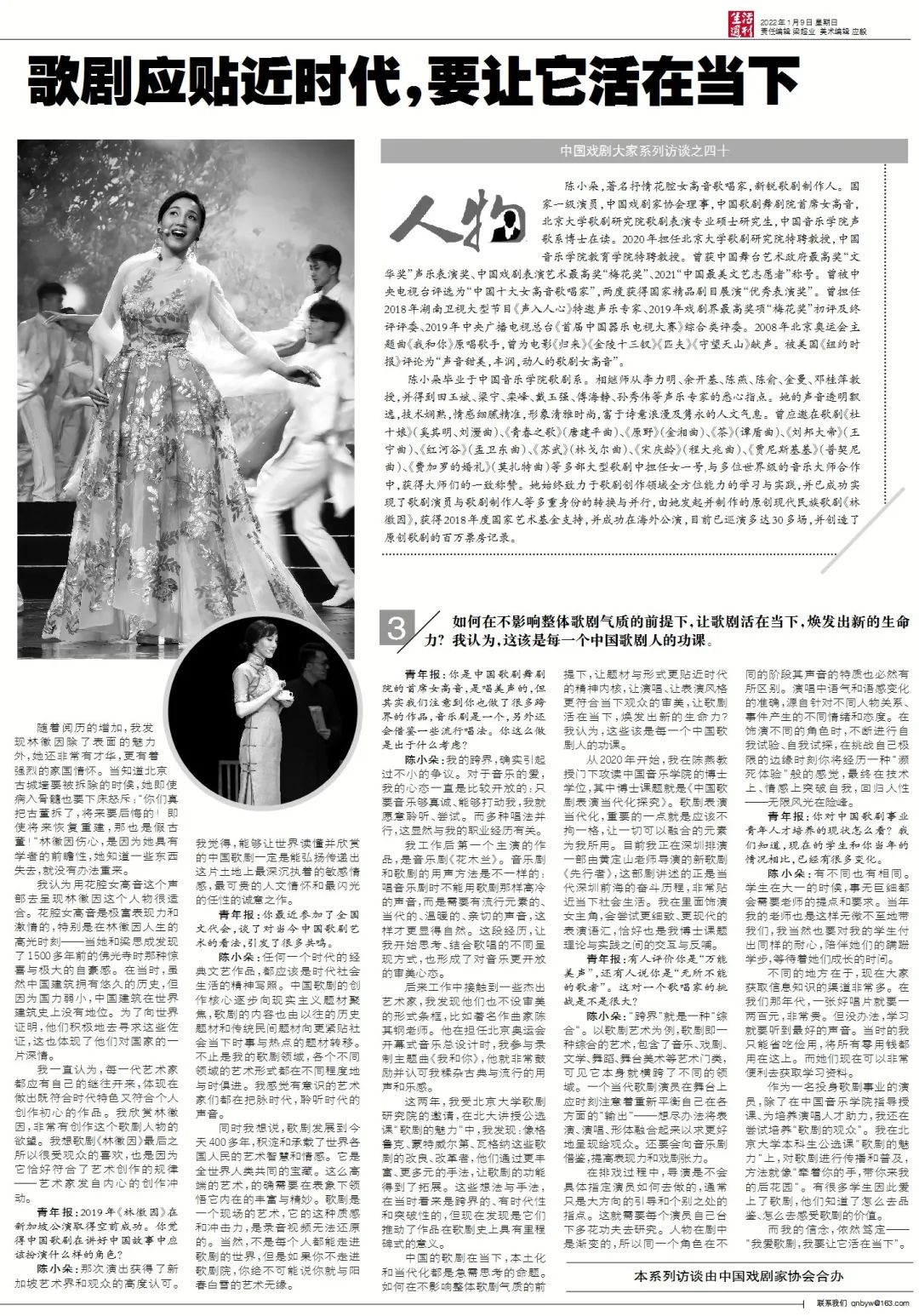 青年报:你最近参加了全国文代会,谈了对当今中国歌剧艺术的看法,引发了很多共鸣。