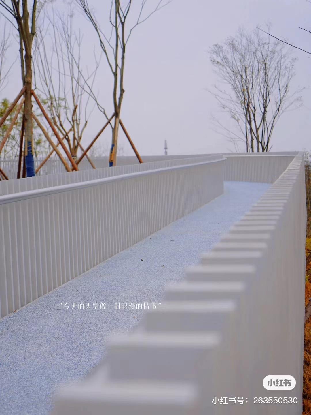 同时保留观景平台周边现状蓝花楹,并补植蓝花楹形成组团,前侧组团补植紫薇。地被层植物以粉紫色调为主,片植草花,撒播波斯菊、马鞭草等草花,形成规模化成片花坡景观。