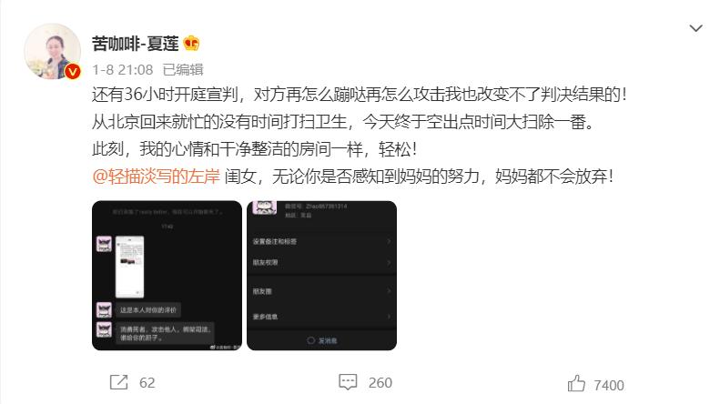 江秋莲在一审判决后发布的微博视频江歌遇难后,江秋莲与刘鑫因江歌死亡原因等产生争议,刘鑫还通过网络方式对江秋莲发表过刺激性言语。对此,法院判决书指出,江歌在救助刘暖曦的过程中遇害,江秋莲失去爱女,因此遭受了巨大伤痛,后续又为赴国外处理后事而奔波劳碌,而刘暖曦在事发后发表刺激性言论,进一步伤害了江秋莲的情感,依法应承担精神损害赔偿责任。