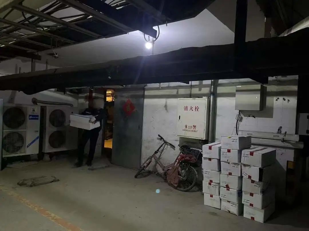 地下停车场区域内设有分拣区、打包区、出货区,已打包好的货品,等待集中统一发出。各区域人员随意出入,管理非常混乱,场内还有吸烟现象。工作人员还在停车场内使用插电类锅具做饭,火灾隐患随处可见。