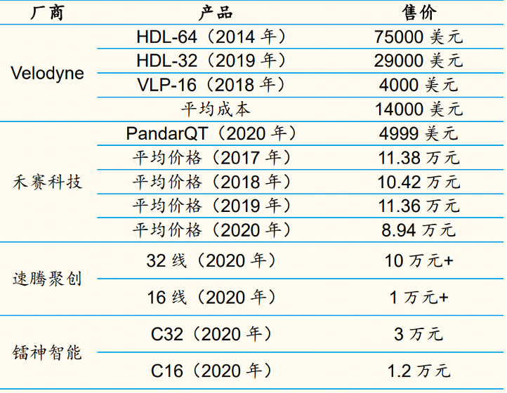 激光雷达定价 来源:产业调研,国金证券研究所