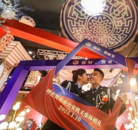 图为水明星和卫亚新。水明星是内蒙古出入境边防检查总站呼伦贝尔边境管理支队巴尔虎突击队的民警,他的婚礼之所以备受“瞩目”,除了那句承诺,更是因为他曾3次推迟婚期。