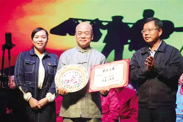 2018年10月,太行盲艺人联谊会在长治市上党区举办《美丽上党 重阳书会》,上党区宣传部为刘红庆(中)颁发“突出贡献奖”。