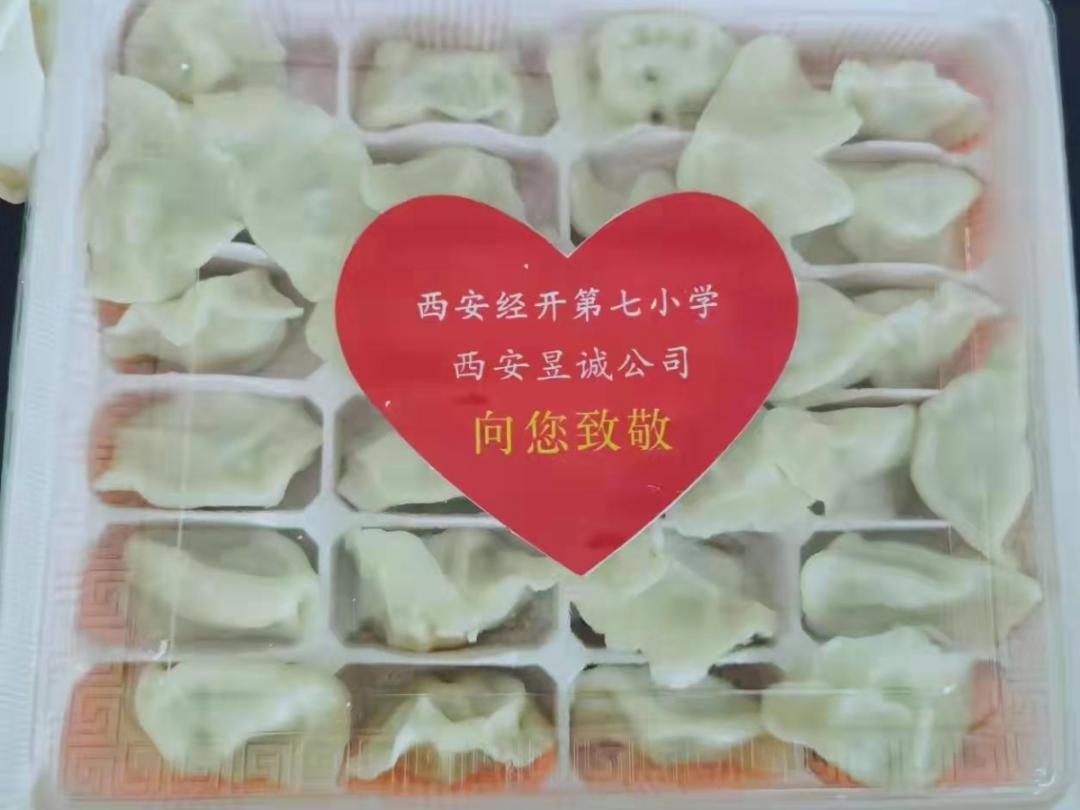 12月22日,恰逢冬至节气,西安经开第七小学校长、西安市三八红旗手贺芳同她的行政团队携西安昱诚公司负责人一起,为坚守一线的疫情防控人员送上了160余盒近5000个热气腾腾的饺子,向他们的辛苦付出表示感谢。