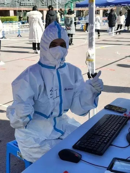 疫情来临,她积极报名成为一名核酸采样信息录入的志愿者。因校园封闭,在结束每天的网络教学和作业批改后,她便穿上防护服,化身“大白”,迅速投入到防疫工作中,扫码、核对信息、递试管……工作忙碌而高效。