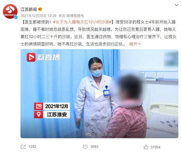 近日,江苏淮安某医院迎来了一位特别的患者:55岁的程女士,为了睡个好觉,自制了一个重达30斤的沙袋,日平均扛沙袋时长可达12小时,严重超过身体负荷。即便如此,程女士仍感觉入睡困难,这才前来就诊。