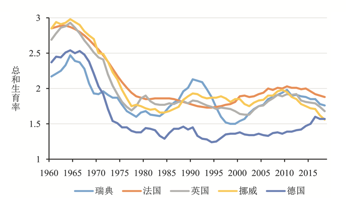 金黄色曲线为1960-2018年挪威总和生育率演变。图源:《国外生育支持理论与实践研究进展》论文配图