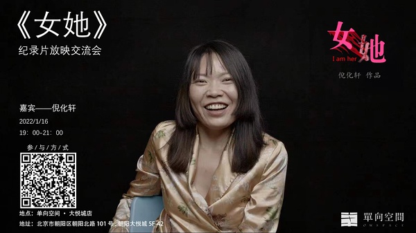 纪录片《女她》是一场关于女性的自白,在她们平静的语气里,我们跟随她们的人生动荡起伏。1月16日晚,欢迎来到单向空间·大悦城店观看这部纪录片,听导演倪化轩讲一讲他拍这部纪录片的故事,也真诚期待映后每一个你的讲述或分享。