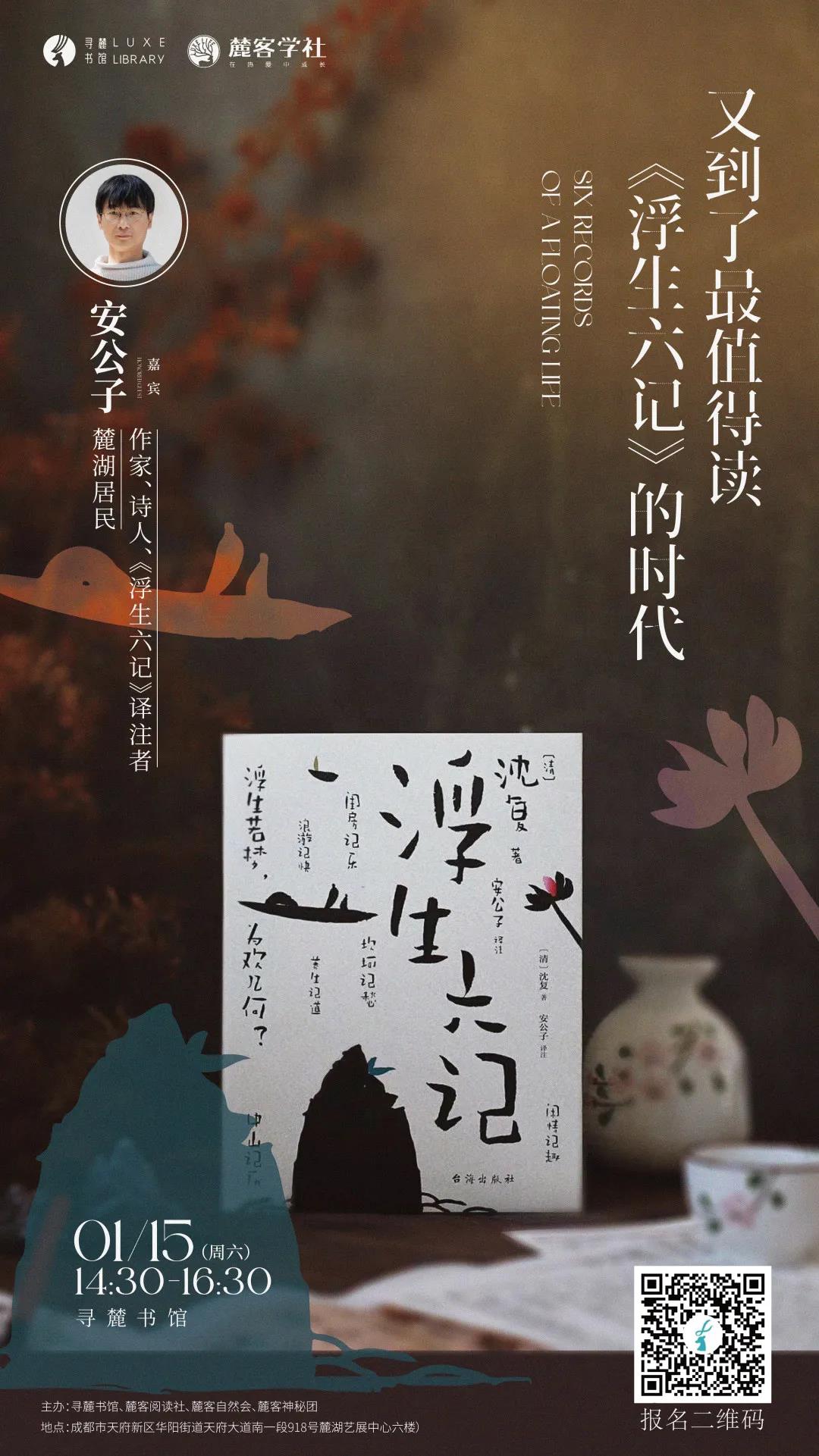 《浮生六记》只有四万字,却有着很丰富的内容,从清末被发现出版以来,一百多年来,受到世人的推崇和喜爱。1月15日,本书新版译者安公子将做客寻麓书馆,与我们一起去发现《浮生六记》的魅力,寻找它与我们今天共鸣的部分,感受珍贵的生活之味和生命的轻与重。