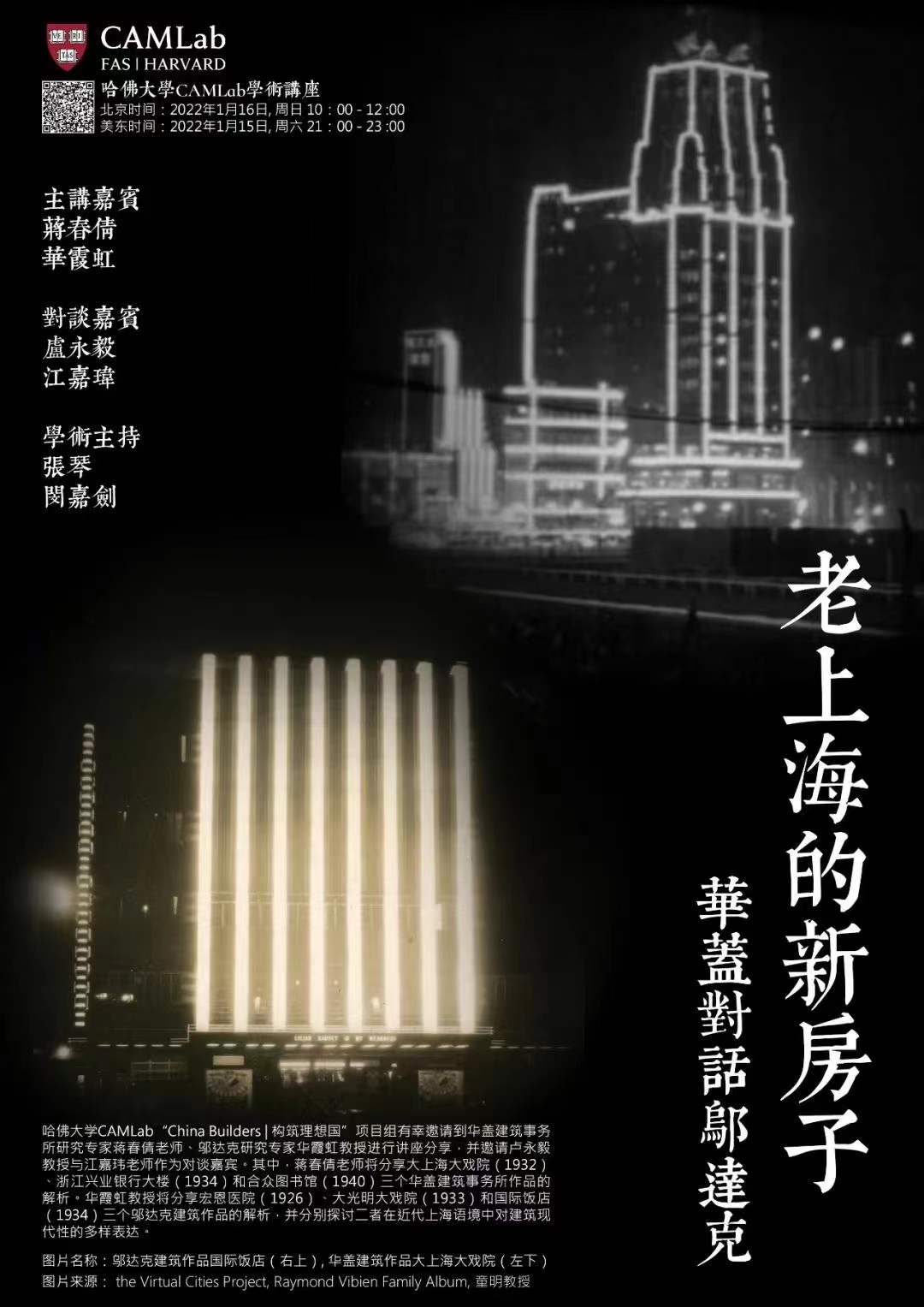 华盖建筑事务所是中国近现代建筑历史上最为重要的建筑事务所之一,由赵深、陈植、童寯三位建筑师于上海成立,建筑作品主要分布于上海、南京、苏州与西南地区。匈牙利建筑师邬达克是上海最多产、最著名的外国建筑师之一,他的建筑作品类型广泛,风格多样,书写了上海近代建筑史辉煌的一页篇章。哈佛大学CAMLab“China Builders|构筑理想国”项目组有幸邀请到华盖建筑事务所研究专家蒋春倩、邬达克研究专家华霞虹进行讲座分享,并邀请卢永毅教授与江嘉玮老师作为对谈嘉宾,力图衔接近现代建筑史标志人物,回顾他们踌躇满志、共筑理想中国的初始记忆。