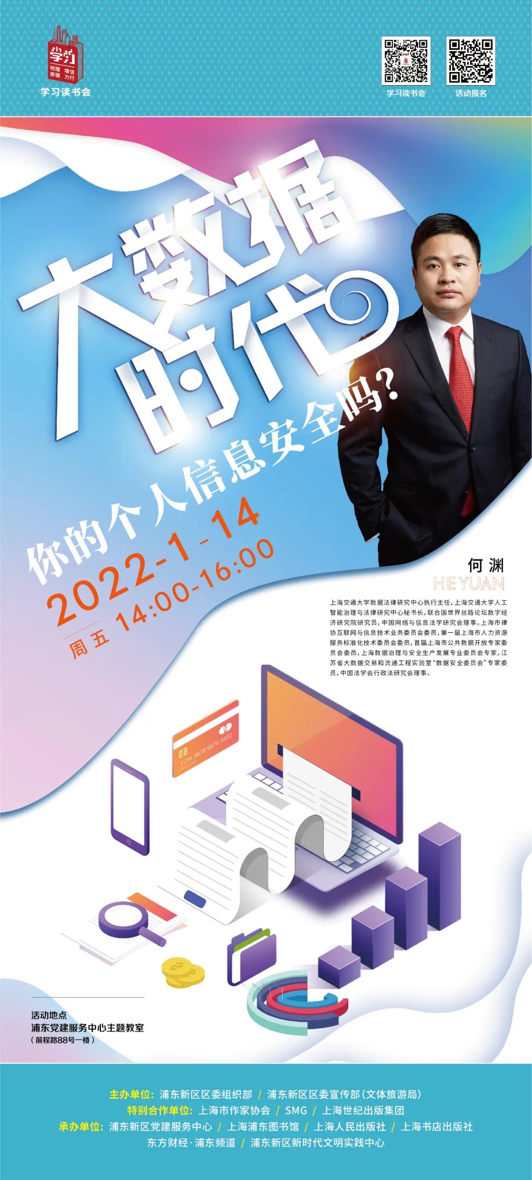 大数据时代,数据和信息成为非常重要的资源。同时,信息泄露、网络诈骗等侵害个人信息安全的各种问题频发,让人们对于自己个人信息的安全感到担忧。个人信息的保护成了大众关心的热点话题。1月14日下午,学习读书会邀请到上海交通大学数据法律研究中心执行主任、上海交通大学人工智能治理与法律研究中心秘书长、联合国世界丝路论坛数字经济研究院研究员、中国网络与信息法学研究会理事何渊,从日常生活中的案例出发,为我们权威解读《中华人民共和国个人信息保护法》。