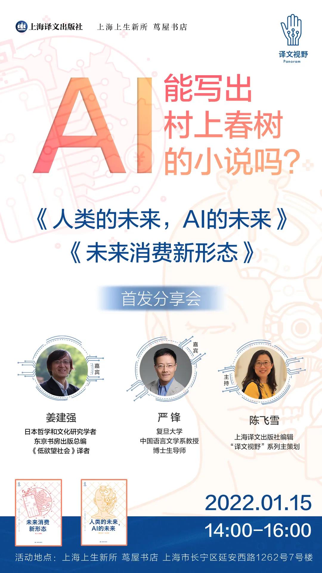 日本著名经济学家大前研一,将棋棋士、永世七冠羽生善治,京都大学iPS细胞研究所所长、教授、2012年诺贝尔生理学或医学奖得主山中伸弥,三人分别站在经济学、人工智能、生命科学的最前端对未来世界的图样做了极具特色的描绘。在《未来消费新形态》和《人类的未来,AI的未来》中,他们更向前一步,用其他领域的视野来反观自己身处的行业,深度聚焦的写作和对话间又充满了闪闪发光的灵感瞬间。1月15日下午,请带着所有关于未来的好奇走进上海上生新所茑屋书店,致力于日本哲学和文化的研究的姜建强老师和复旦大学中国语言文学系教授、博士生导师严锋老师将担任“译文视野”新书首发分享会的嘉宾和未来社会“观察员”,和你聊一聊他们视野中的未来世界。