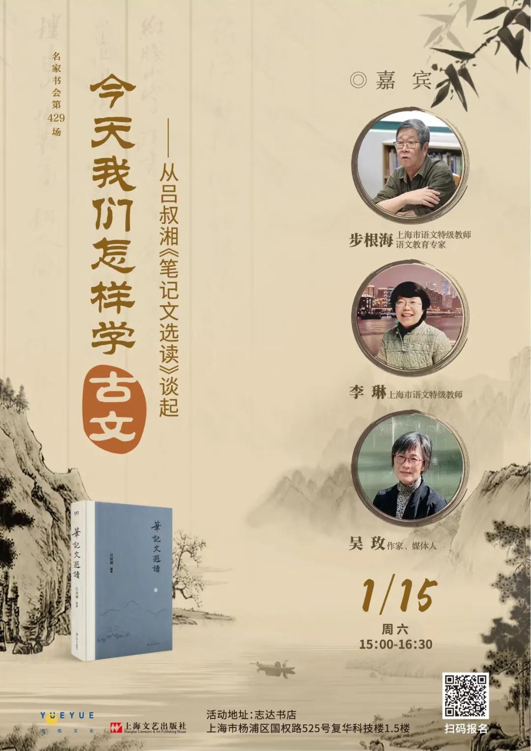 著名语文学家吕叔湘先生曾为初学文言的青年编了一部《笔记文选读》,由于选材精当、注释确切、讨论益人心智,出版半个多世纪以来,一直深受读者欢迎。上海文艺出版对勘各种版本,择善而从,增收三版跋、一九五五年序及叶圣陶序为附录,推出新版。1月15日,我们邀请特级语文教师步根海、特级语文教师李琳与一直致力于青少年阅读推广的吴玫老师以“今天我们怎样学古文”为主题,与读者谈谈吕叔湘先生为数十年前的年轻人编著的这本书,对今天我们学好古文有哪些启发,以及学古文对我们学语文的重要性。
