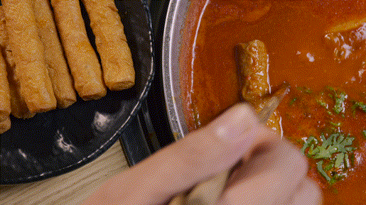 三重辣意堆叠,造就肉感细腻、十分香辣的爆炒羊羔肉,辣椒,是激发羊肉香味的无可替代的佐料。羊肉与辣椒的“奇遇”不止于此,还有香辣羊蹄,红辣油同时完成增香与提色;羊肉臊子面或者羊肉搓面,辣椒粉始终是汤色红润的关键。
