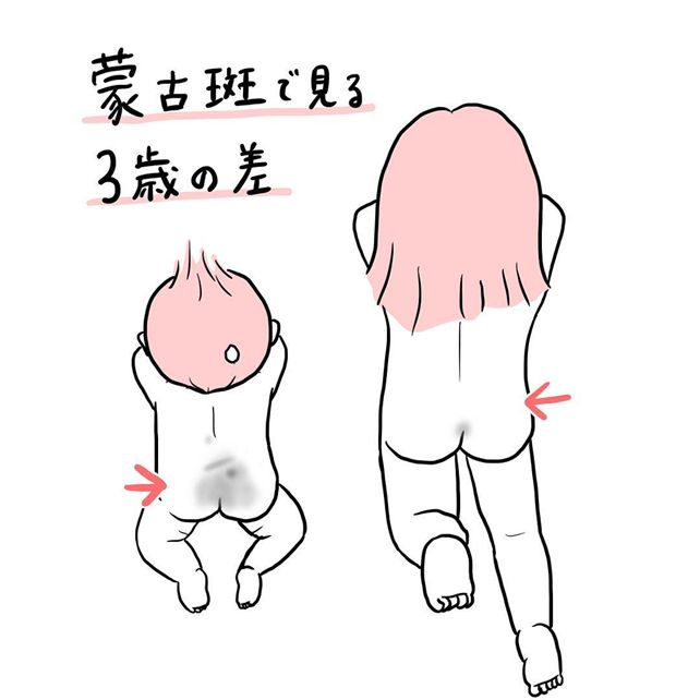 图3:一位日本的妈妈画了她女儿刚出生时蒙古斑和现在的区别