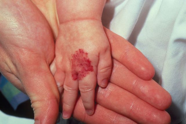 除了以上这些胎记还有一些胎记需要特别注意,如草莓状血管瘤(草莓痣),是一种常见在初生婴儿皮肤上的扁平红斑,虽然这些红斑可能随着年龄增长而消失,但它如果过大或长在眼周,口鼻耳周围的话就需要注意,这可能妨碍孩子的视力、呼吸和进食[8],最好尽早带孩子就医。
