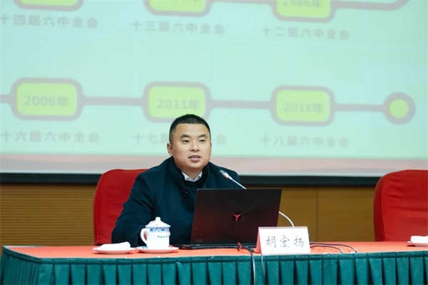 团市委副书记、市青联主席胡宏扬围绕深刻认识总结党的百年奋斗重大成就和历史经验的重大意义,深刻认识党的百年奋斗的初心使命和重大成就,深刻认识中国特色社会主义新时代的历史性成就和历史性变革,深刻认识党的百年奋斗的历史意义和历史经验,深刻认识以史为鉴、开创未来的重要要求,从党的百年奋斗历程中汲取智慧和力量等六个方面对党的十九届六中全会精神进行了深入解读和深刻阐释,用生动的案例、丰富的史实、详实的数据,全面、系统阐述了党的十九届六中全会的重大历史意义和时代价值。