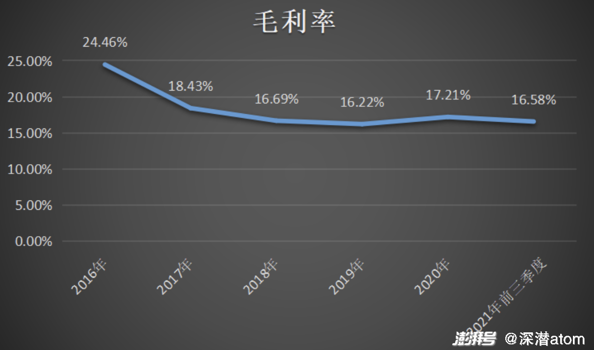 从毛利率看,长城汽车过去六年下降明显。2016年,2017年,2018年,2019年,2020年,2021年前三季度,公司毛利率分别为24.46%、18.43%、16.69%、16.22%、17.21%、16.58%,下降的毛利率的原因无他,正是中国汽车市场过去经历了较为激烈的行业竞争。
