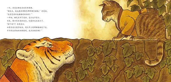 ▲绘本《老虎和猫》不过,故事终究只是故事。自然界中,老虎当然是会爬树的。