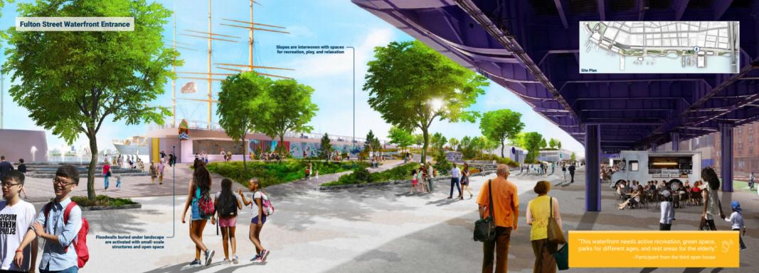Fulton街滨水区入口示意图。举措之五:提升生态环境品质,推进可持续发展目标的达成
