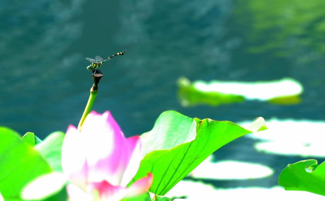 【海大之美 043 相忘江湖】“惟有绿荷红菡萏,卷舒开合任天真”,又是李商隐!难怪胡兰成与张爱玲热恋时还在讨论李商隐的诗。写荷花、拍荷花,那是写不尽、拍不完的。海大的荷花不多,我却认定她是海大之夏的浓彩,是因为她出淤泥而不染,真是海大“勤朴忠实”的写照。