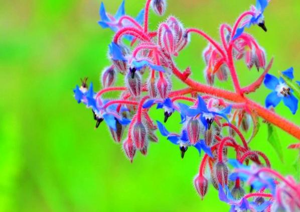 【海大之美 030 簇簇抽芳】我在海大中心湖的木栈道临水的一块空地上,还拍到一枝有绒毛开小蓝花的草本植物,可是我叫不出她的名字。待撰写本文时,我将照片发给了朋友圈中的园林经营者与水生植物专家,他们也叫不出名。于是,我在网上用草本植物、春开用蓝花等关键词找,找了半天,看到一张熟悉的图片。原来这就是“琉璃苣”。它是一年生草本植物,花梗通常淡红色;花星状,鲜蓝色,有时白色或玫瑰色;雄蕊鲜黄色,5枚,在花中心排成圆锥形。原产东地中海沿岸及小亚细亚,现欧洲和北美广泛栽培,可作蜜源植物,鲜叶在欧洲作蔬菜,鲜叶及干叶又可用于炖菜及汤、饮料的调味。她是欧洲人使用了七百年的药草,琉璃苣拥有许多医学价值,许多年来,民间一直流传着琉璃苣的多种治疗功效。据说在中世纪的欧洲,当时修道院的后花园里,普遍种植琉璃苣,不仅可供盆栽、庭院栽种观赏外,主要用以治疗多种疾病,被认为是修道士的秘密法宝。欧洲士兵在上战场前,总会插一支琉璃苣在酒杯里,并大声呼喝:“我是琉璃苣,我不畏惧!”用这种方法来提高士气,有助于战争的胜利。据说文艺复兴时期的名画与此相关,还有一个电视剧叫《爱上琉璃苣女孩》,可惜我都没见过。