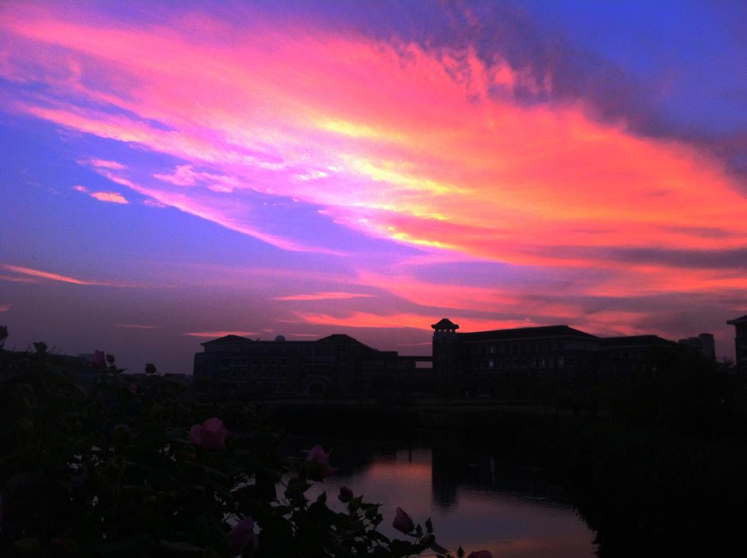 【海大之美 051 秋水黄叶】我却更喜欢海大的秋色,黄色是秋色,红色也是秋色,甚至晚霞也是秋色。“开缄日映晚霞色,满幅风生秋水纹。”在秋天的黄昏,你走在湖边,看着夕阳西下,那些学生们三三两两在校园中不紧不慢地走着,你可以忘记一天下来工作的疲惫,你不再为工作顺畅或受到称颂而喜,无须为受到诋毁受到挫折而忧。当此良辰美景,让我们共享,学会放下,心就向上。