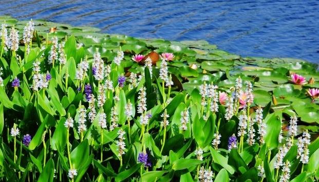 【海大之美 046 碧叶红英】让我们将目光继续聚焦于湖中。鸊鷉!这两个让人看着也写不全的字,这种精灵给海大带来了灵动。因为我们都生活在太阳能照射的地方,海大,这片至今仍保持原生态的宝地。还有,梭鱼草!据说她的花语叫自由。这是我校水生生态修复教授的杰作,他们论文是写在江河湖泊上的。