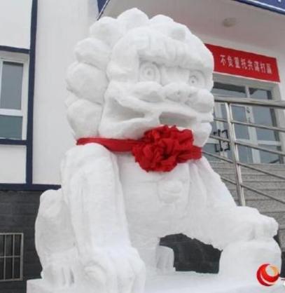 大雪天在院子里堆个雪狮子再常见不过了。