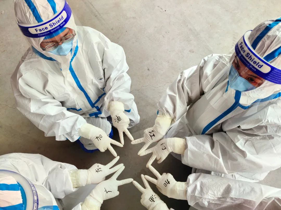正式开展核酸筛查工作前,可爱的“大白”们给彼此写名字,互相加油打气!