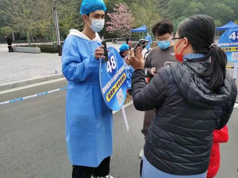 “您好,请排好队,扫一下核酸码,接种疫苗48小时内不能做核酸哦。”在环市街碧桂园社区群星公园采样点,医护人员和志愿者一遍一遍不厌其烦地重复、解释着注意事项,于细微处见精神,于平凡处见伟大。