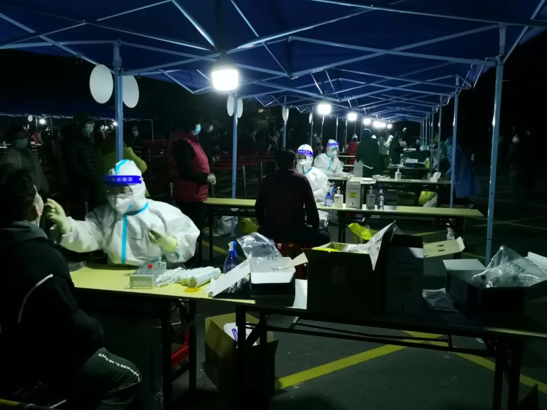 夜幕降临,群星公园采样点仍在高效运转中,医护人员各司其职,不知疲倦,继续坚守第一线!